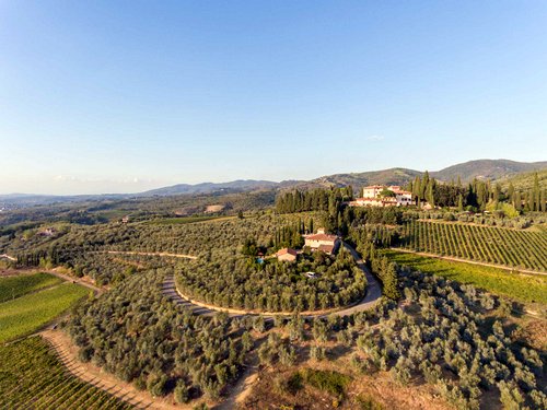 Nestled in the hills is this quaint but luxurious Renaissance villa, with Italian gardens, compete with cypress, vines and olive groves surrounded by stone farmhouses. The Monna Lisa restaurant offers the opportunity to enjoy the fine produce grown on the farm. This is not a merely a marketing gimmick as the young lady grew up here.
